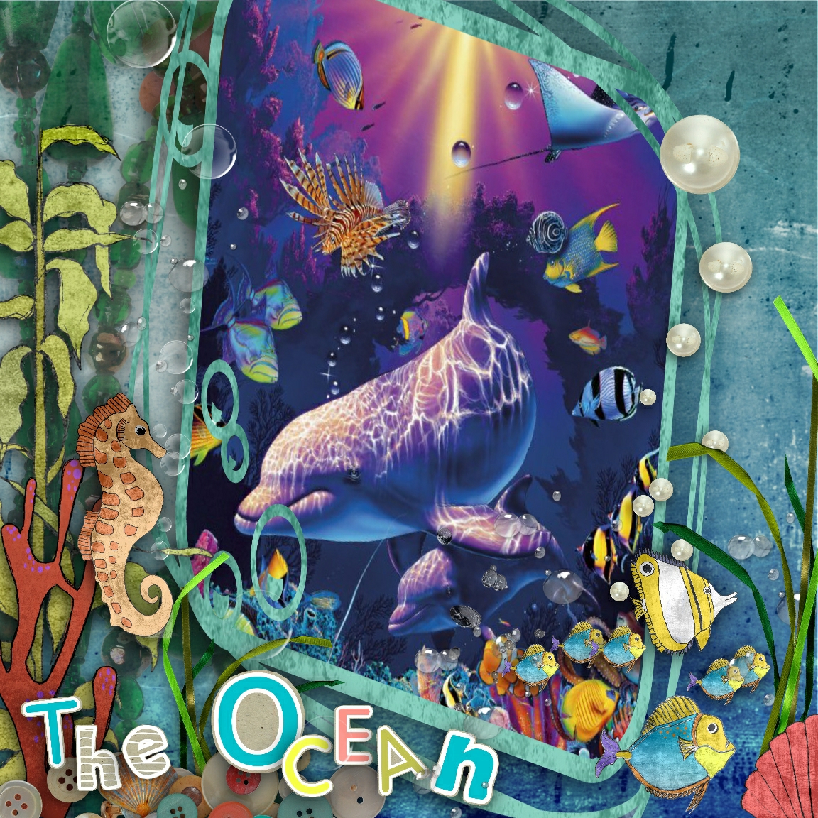 My first projects are some layouts i have created using imagery from my favourite Under/Above water painter Christian Reises Lassen. His style is so amazing that i fell in love with it the first time i saw one of his paintings in a mag. I was so excited when in Las Vegas Caesars Palace a few years ago and found a CRL shop - gosh i was in my element.